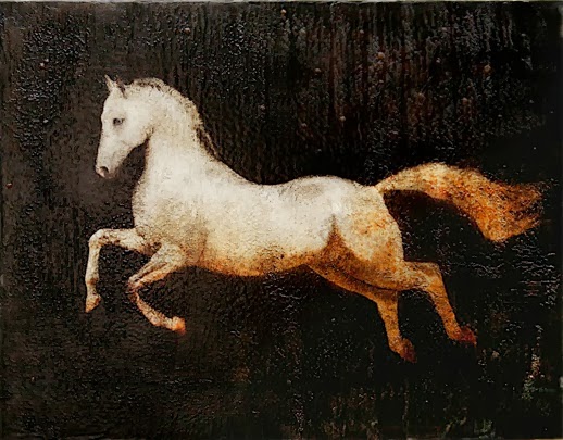 A 36x36 inch mixed media painting with oak tiles and rare earth magnets.