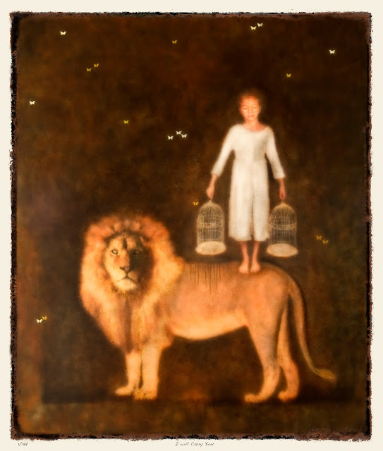 This museum quality print is produced from my original photo-encaustic painting "I Will Carry You." It was part of a series of large scale works produced for an exhibition at The Bill Lowe Gallery in Atlanta GA. The original 60x48 inch painting is composed of beeswax, oils, and resins fused over a large scale photograph.